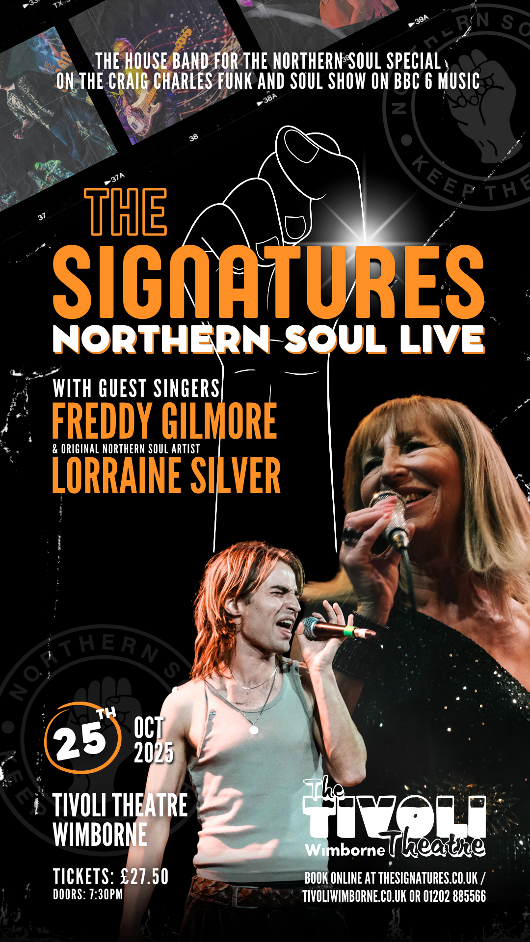 THE SIGNATURES feature Freddie Gillmore one of the hottest young vocalists on the UK Soul scene. They have built up an amazing reputation over the years backing original Northern Soul Artists from the USA on their UK tours including SIDNEY BARNES, EDDIE HOLMAN & TOBI LEGEND and the late greats DEAN PARRISH & NOLAN PORTER as well as being featured as the house band on The Craig Charles Funk and Soul Show on BBC 6 Music.