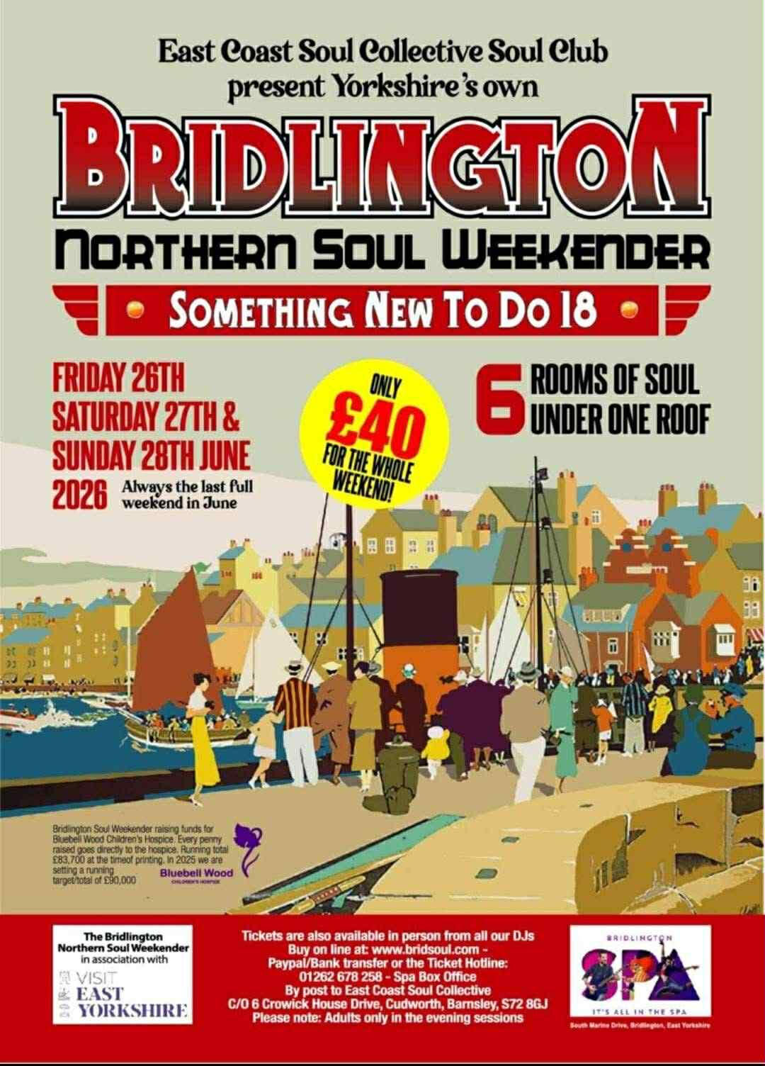 The 18th Bridlington Northern and Modern Soul Weekender takes place on 26, 27 & 28 June 2026.