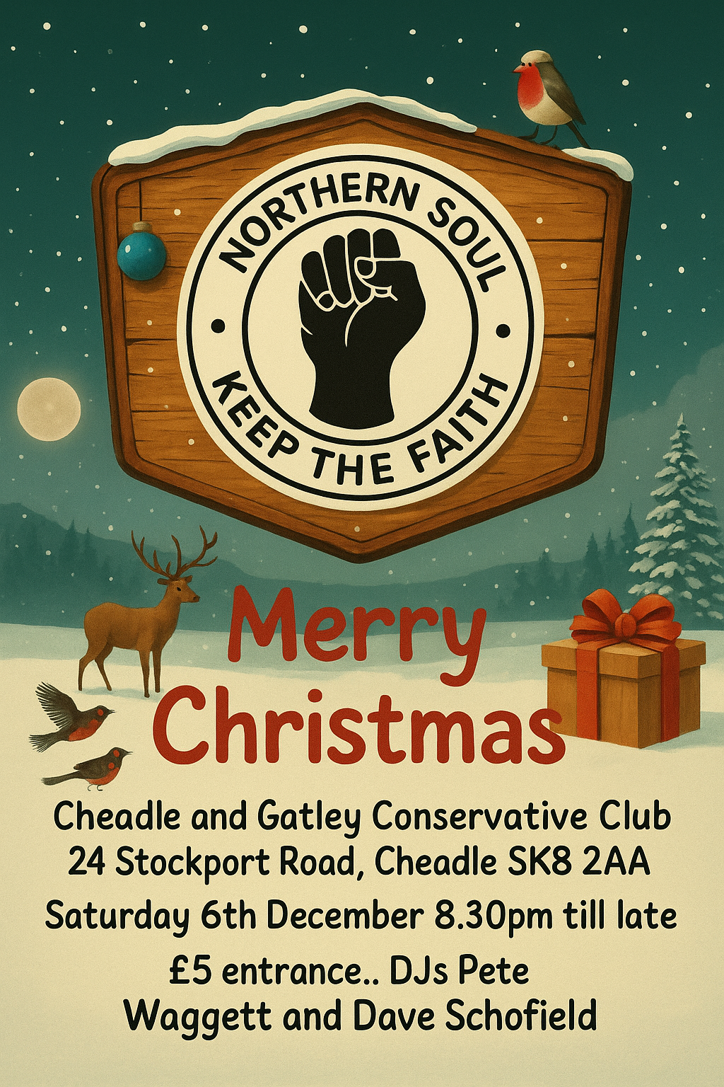 The first Saturday of the month means one thing....the return of "Out On The Floor"... Cheadle Soul Night...for over 11 years we've been giving you Sweet Soul Music on the great large dancefloor at Cheadle Conservative Club..... with Dave Schofield and Pete Waggett playing the best in Northern Soul.... plus a touch of Motown and 70's Soul..... Great people.... top venue....
