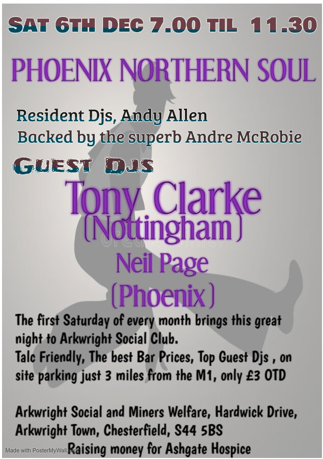 The Phoenix Northern Soul club brings yet another top night of Northern Soul, last month was an absolute storming night with top djs Don Mopsey Morris and Dean Fox commanding from the decks with an eclectic mix with everything from Club Classics, forgotten favorites, a smidgeon of rare but in common, music to make toy dance.