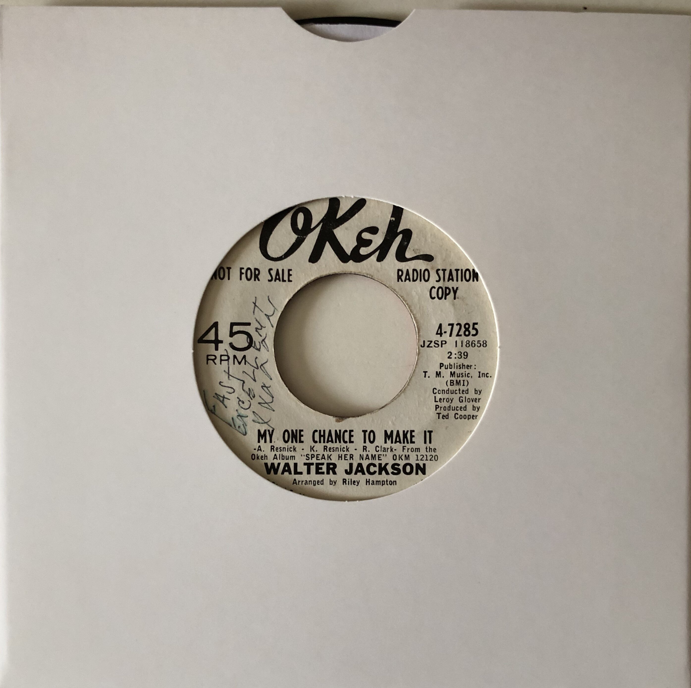 13 Walter Jackson – My One Chance To Make It b/w Deep In The Heart Of Harlem – Okeh WDJ w.o.l. on one side only, flip fine & vinyl mint, two great sides