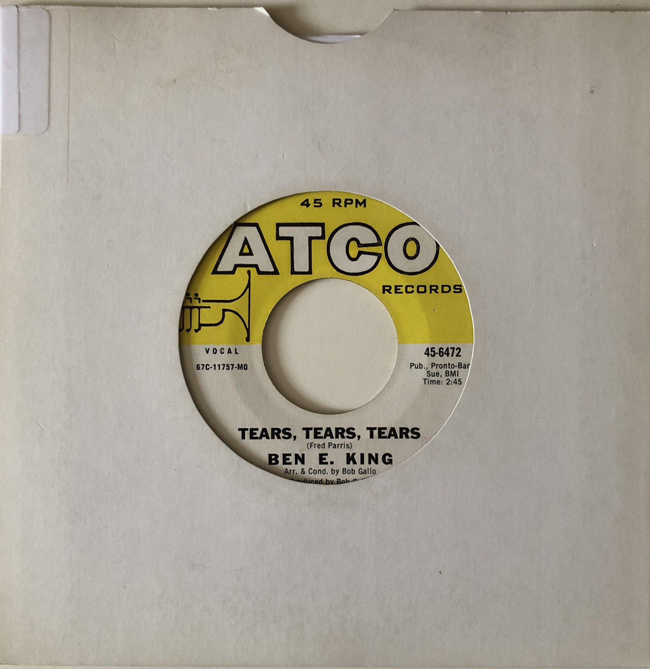 14 Ben E King – Tears Tears Tears b/w A Man Without A Dream – Atco two big city soul mid-tempo sides from 1967