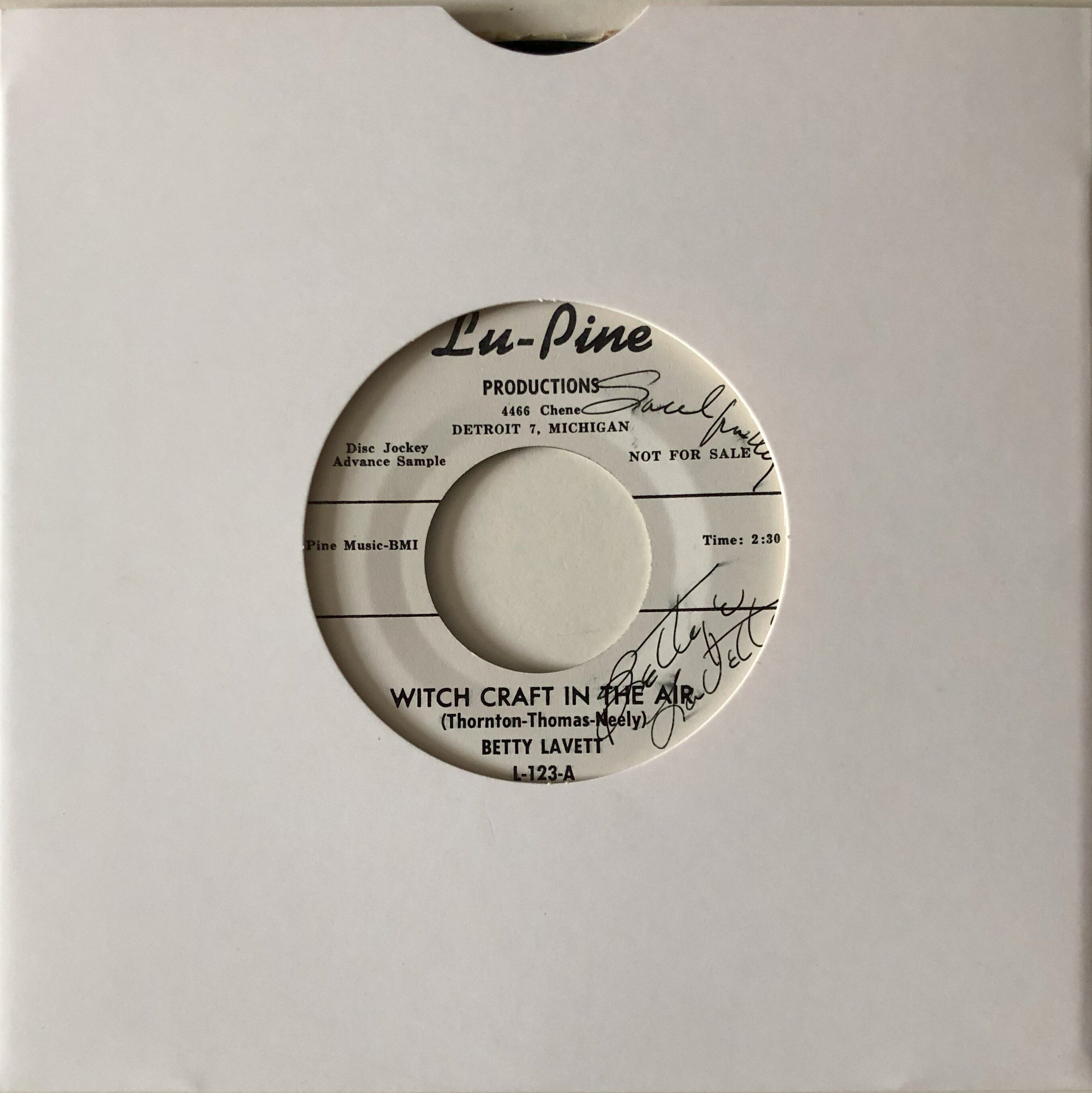 15 Betty Lavette – Witchcraft In The Air – Lupine WDJ M- £70 rare mint demo signed “Soulfully Yours Bettye Lavette” of this haunting atmospheric mid-tempo R & B mover