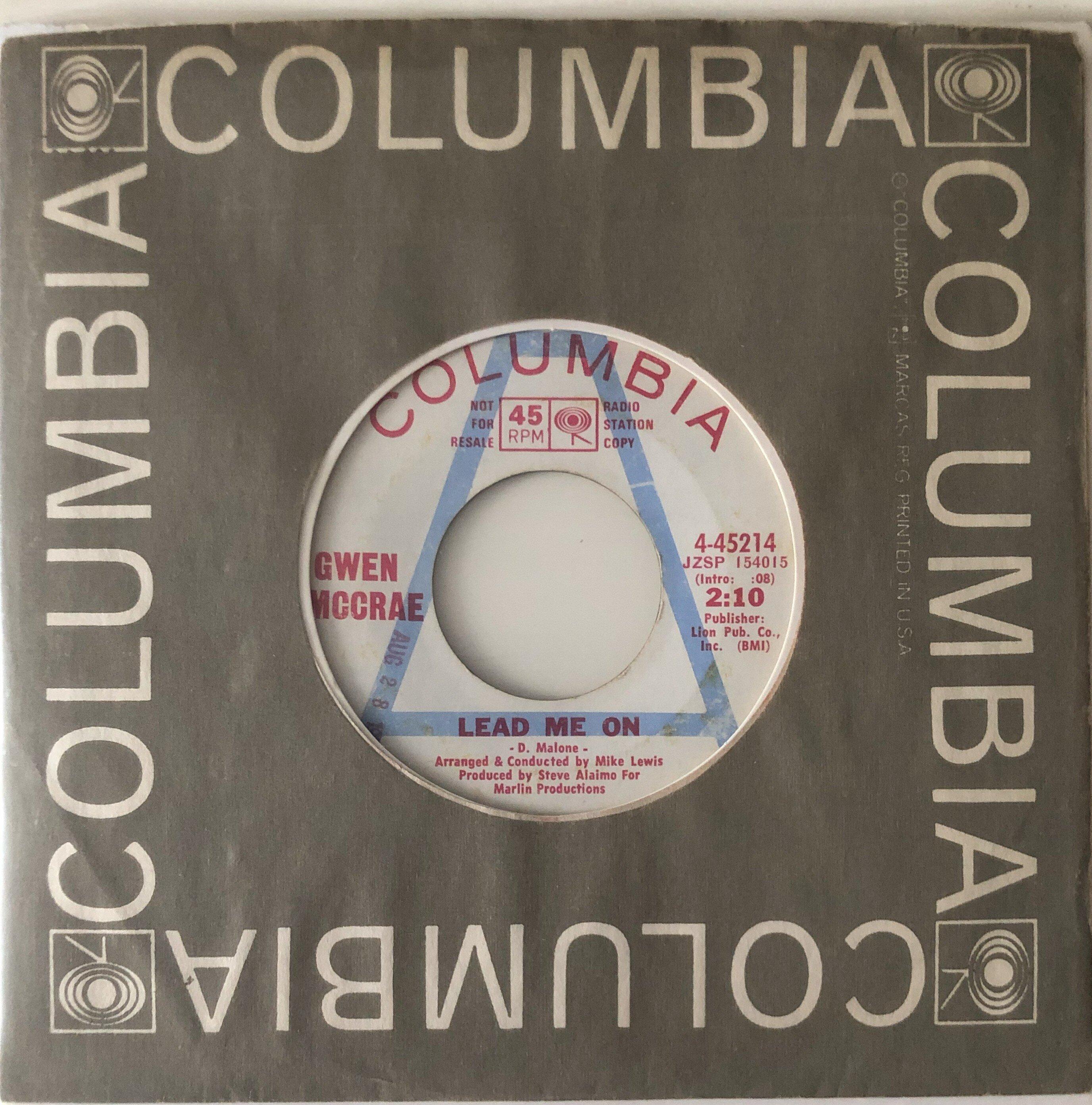 17 Gwen McCrae – Lead Me On – Columbia WDJ M- £40 release date stamped demo Aug 1970 on Side A of demo side, superb mid-tempo crossover dancer, ex Wilton biggie