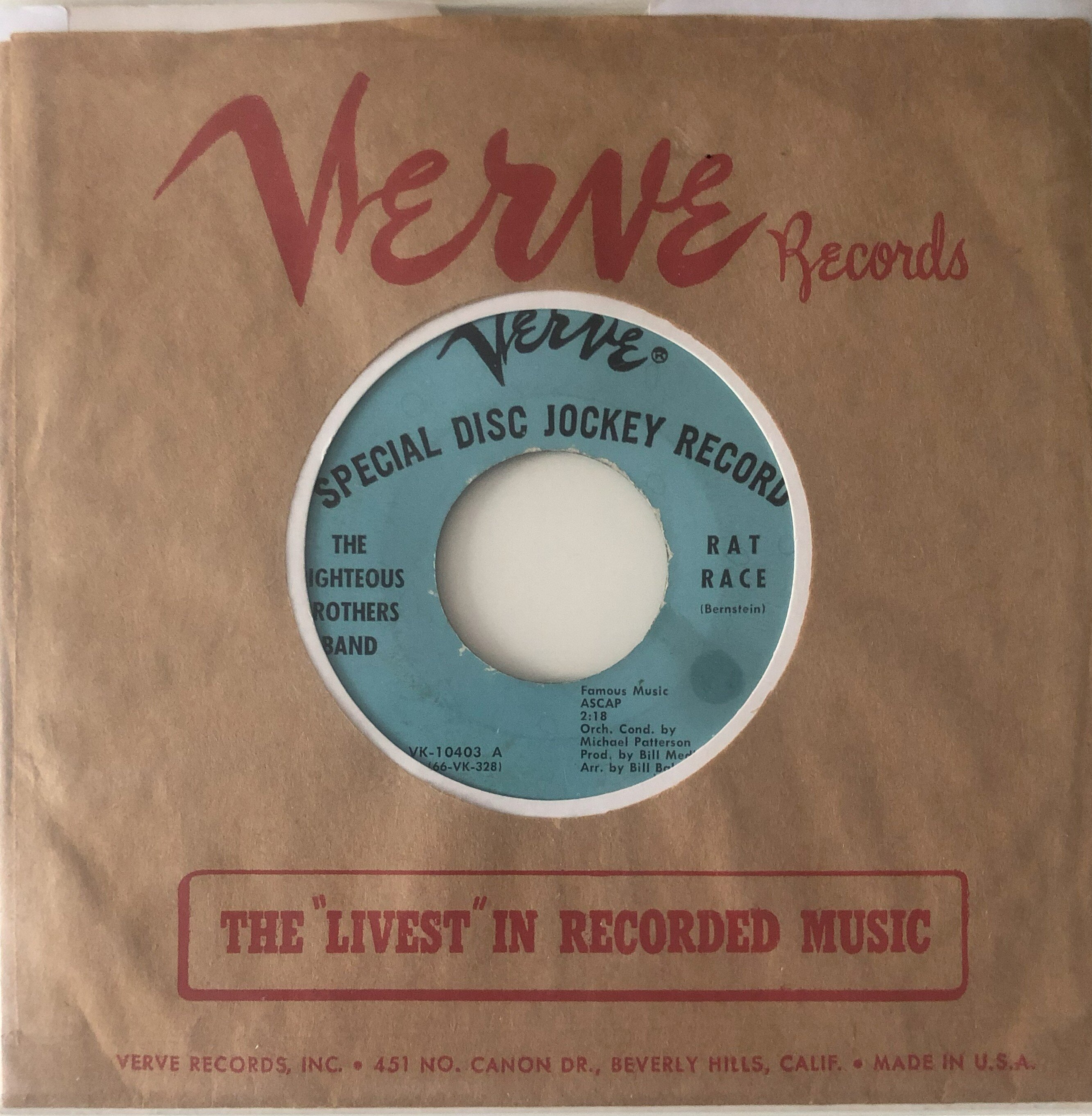 18 The Righteous Brothers Band – Rat Race – Verve Demo M- £40 matrix stamped original demo of this big production drivin’ upbeat instrumental classic