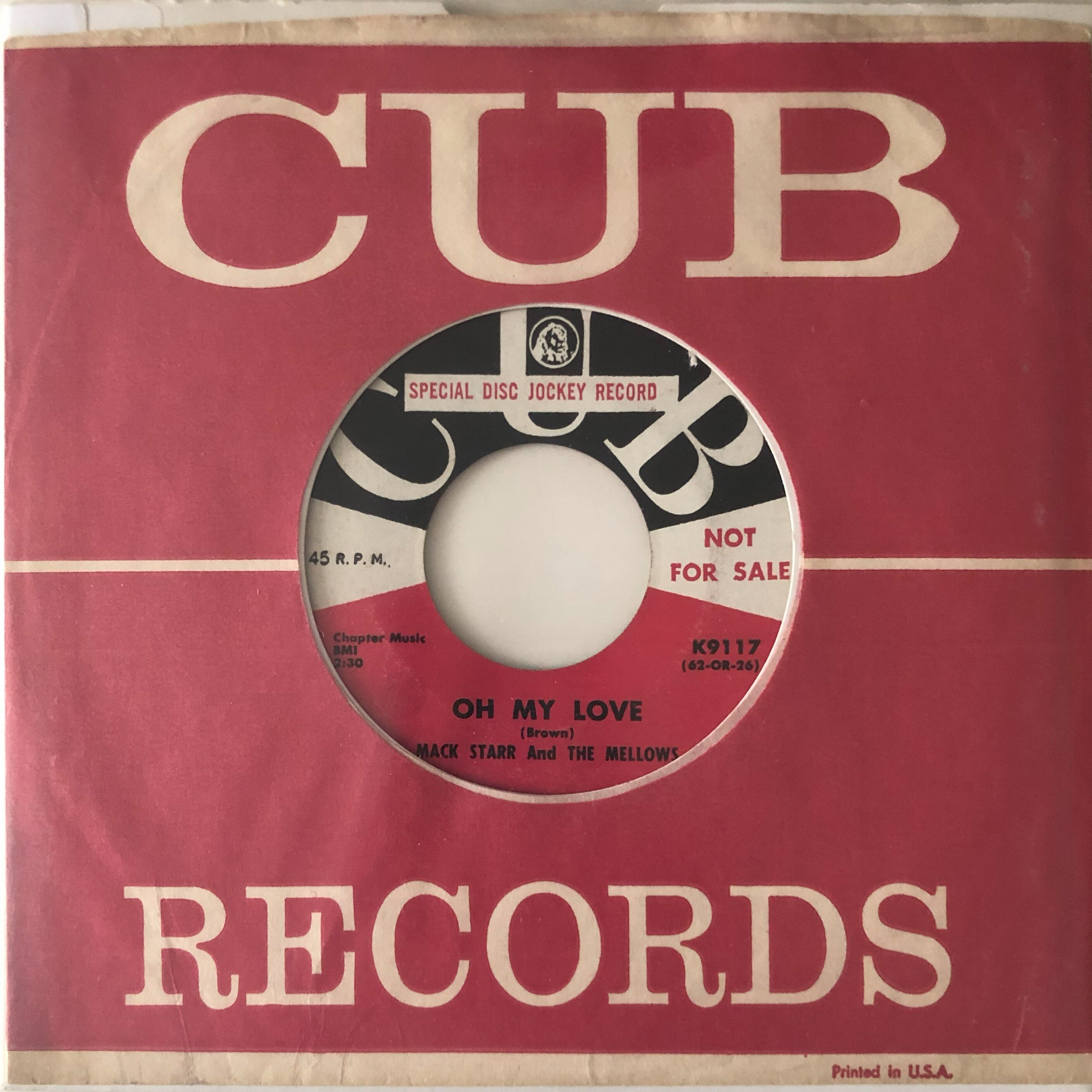 20 Mack Starr And The Mellows – Oh My Love b/w Drifting Apart – Cub Demo M- £40 great singer & superb big city soul mid-tempo double sider, old Saus spin