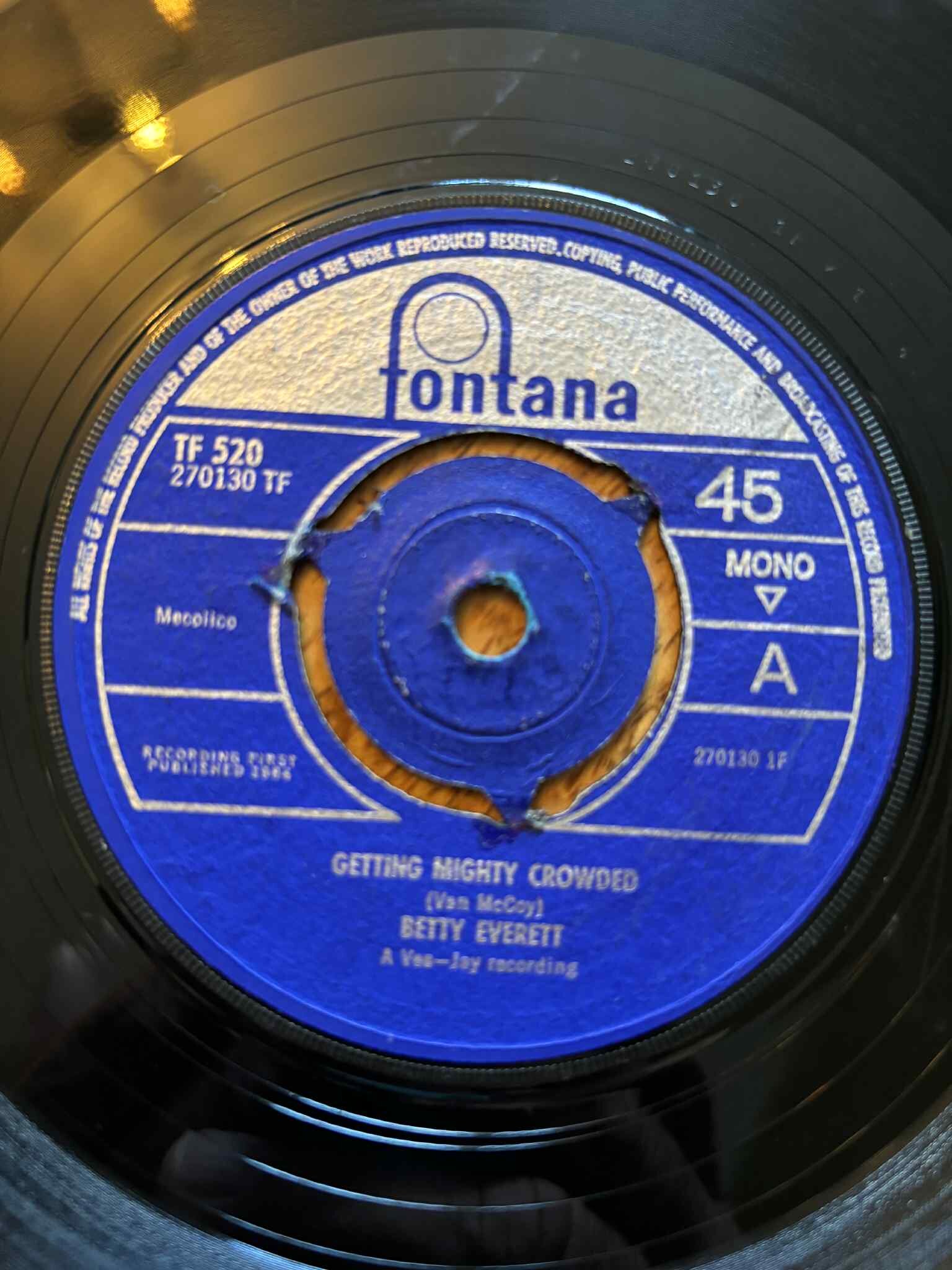 12. Betty Everett - getting mighty crowded (UK Fontana) transplanted centre, nice job tho, VG+ £12