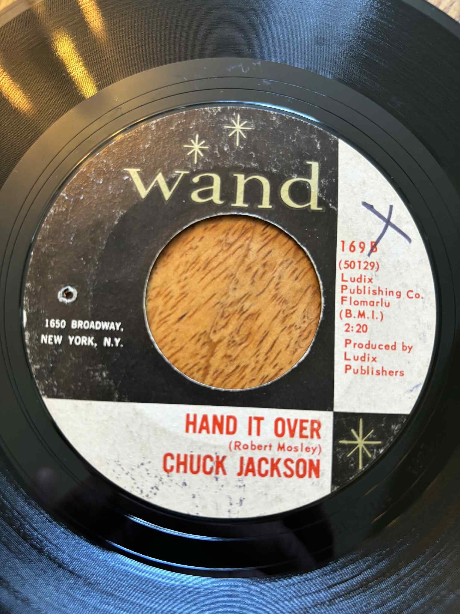 7. Chuck Jackson - hand it over (Wand) drill hole, X on label, VG+ £25