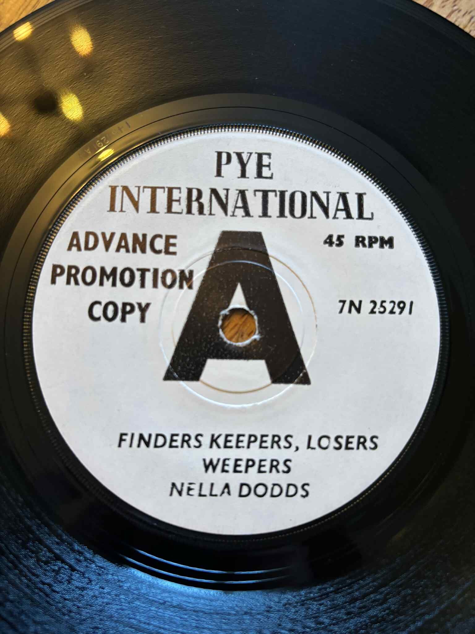 1. Nella Dodds - finders keepers, losers weepers (UK Pye Int. White DEMO) nice flip, M- £90