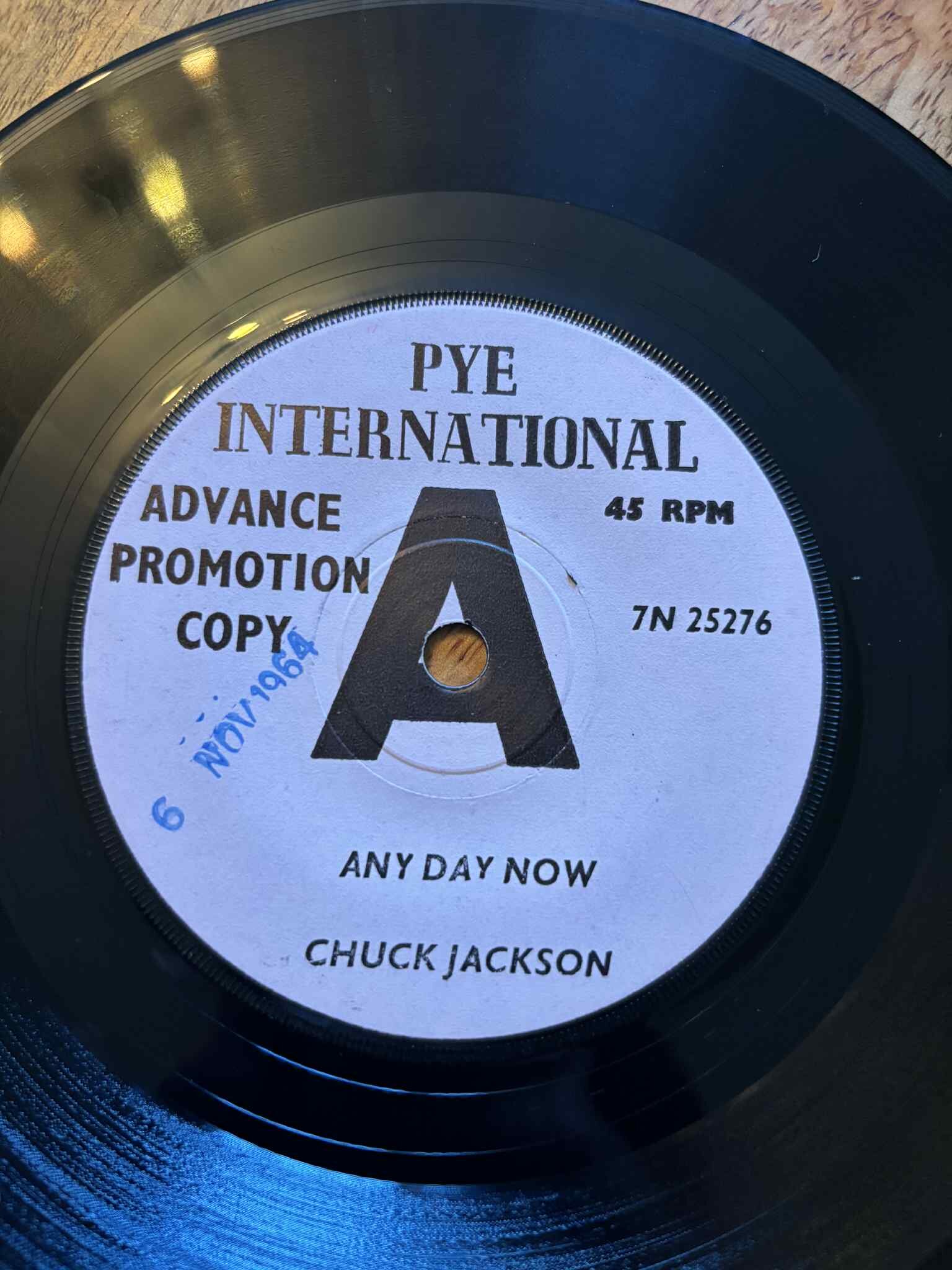 10. Chuck Jackson - any day now (UK Pye Int. White DEMO) vinyl has some shading but probably never been played, strong VG+ £60