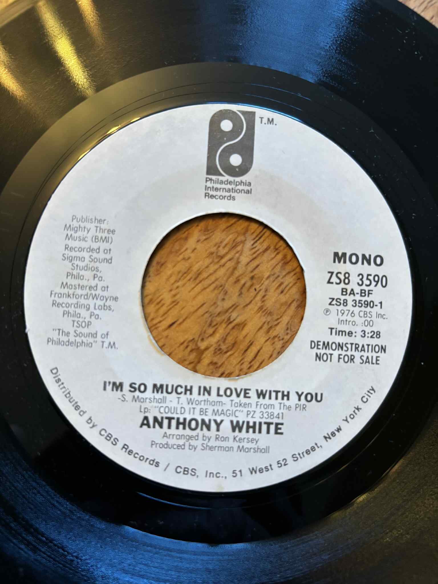 8. Anthony White - I`m so much in love with you (Philadelphia Int. White DEMO) stereo side has a mark on it / mono side is M- £20