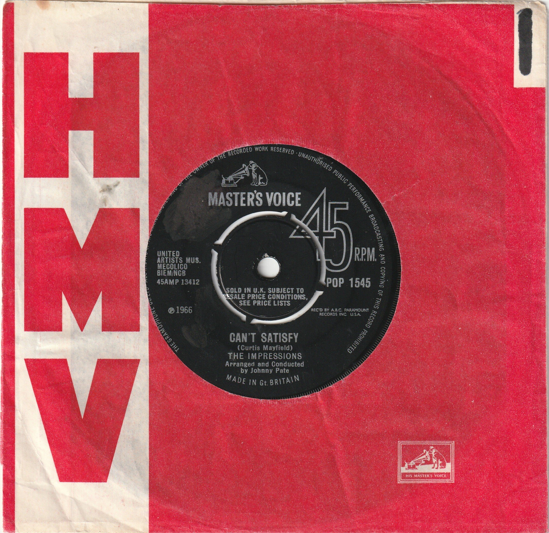 The Impressions - Can't Satisfy - HMV - Mint M - £20