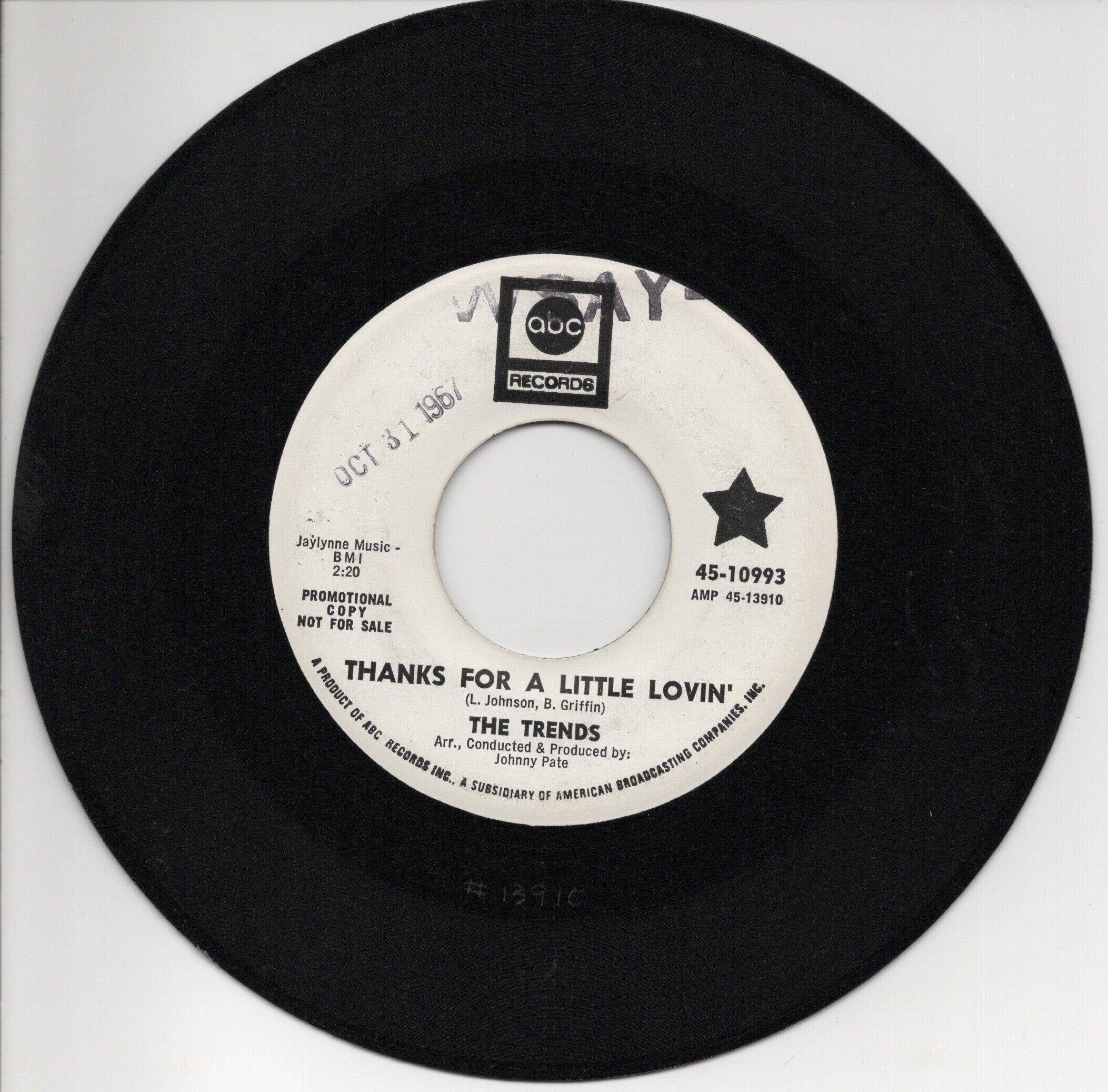 *** UPDATES & REDUCTIONS *** I still need a bit more to fund my big fishing trip to Alaska next month, so here’s a bunch of nice WHITE LABEL PROMO's. Check the scans for label variant and label condition. Prices in GB Pounds - price INCLUDES standard International Airmail with Tracking - insurance will be extra at actual cost. Payment into my UK bank account, sorry, no PayPal on these. Message me with any questions or for unfiltered mp3's Tks, D ***SOLD*** Danny Monday "Baby, Without You - strong VG++ - GBP1,400 ***SOLD*** The Trends "Thanks for a little Lovin' " - VG++ - GBP800 Luther Ingram "If It's All The Same To You Babe" strong VG+, plays great - GBP700 - now GBP650 * Jimmy & Vella Cameron " Lovin' You Is Such..." strong VG++ - GBP450 - now GBP400 * The Sapphires - "Gonna Be A Big Thing" VG++ - GBP260 now GBP220 * The Soulful Twins "I Can't Let You Go" strong VG++ - GBP250 - now GBP220 * Ron Holden "I'll Forgive And Forget", M- in co sleeve, GBP200 - now GBP180 *
