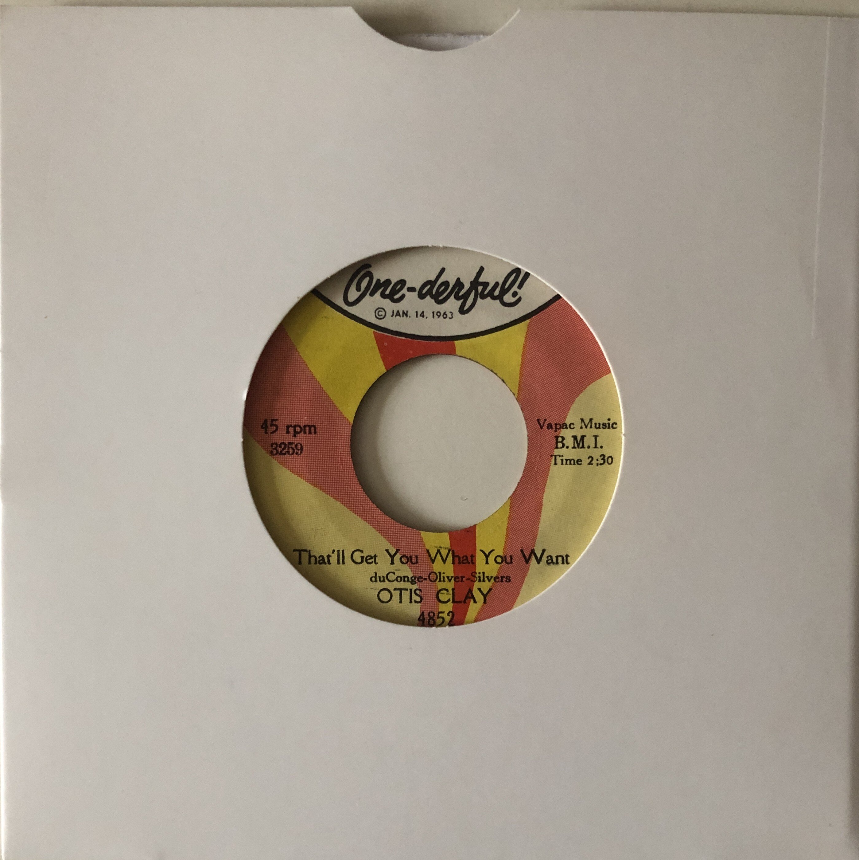 Payment through PayPal as F & F or add 5% to cover fees Paypal to roger-banks@supanet.com Please PM if interested UK Customers Only New Postage Rates 1st Class £4.50 add £0.75 for each additional item, Recorded Delivery add £2.00 to 1st class rate, Special Delivery £10.00 to 1st class rate Please note company sleeves shown are not included with each record, unless stated, but are available at an extra cost from £2.00 each please ask for prices US & UK originals all M- / Ex+ condition & strictly & individually graded 1 Jerry Butler – I Found A Love – Canadian Reo £20 in company sleeve 2 Dee Clark – Gloria – Vee Jay £20 vinyl copy 3 Jerry Butler – Lost – Canadian Reo £20 in company sleeve 4 Della Reese – A Clock That’s Got No Hands – RCA Victor £50 in company sleeve 5 Baby Washington – Workout – Neptune 107 £30 6 Andy Mack – Do You Want To Go b/w Later Than You Think – Cheses £50 black label 7 The Imperials – I’m Still Dancing – Capitol £30 8 The Fi-Dells – Don’t Let Me Love You – Imperial WDJ £25 early label design 9 The Willows – It’s Such A Shame – Heidi £25 10 The Ovations – Pretty Little Angel b/w Won’t You Call – Goldwax WDJ £50 11 Jewell & The Rubies – Kidnapper – La Louisianne £35 1st label copy 12 The Escorts – The Hurt – RCA Victor £30 barely visible w.o.l. 13 Frank Frost – My Back Scratcher – Jewel £40 14 Percy Millem – Call On Me – Goldwax £80 vinyl copy 15 Jerry Butler – Just For You b/w Believe In Me – Canadian Vee Jay Demo £20 plus US Vee Jay vinyl issue £15 16 Ben E King – Too Bad – Atco WDJ £20 vinyl copy 17 Gene Chandler – From Day To Day – Constellation £25 early yellow label design 18 The Cadillacs – What You Bet – Smash WDJ £25 vinyl demo in company sleeve 19 Chuck Jackson – I Don’t Want To Cry – Wand £15 mint vinyl copy 20 Christine Kittrell – Call His Name – Federal £25 in company sleeve 21 Lenny O’Henry – Across The Street – Atco £20 vinyl copy in company sleeve 22 Little Anthony & The Imperials – Never Again – DCP £20 mint in company sleeve plus Canadian United Artists copy £20 maroon / silver label 23 Lou Johnson – Reach Out For Me b/w Magic Potion – Big Top £25 vinyl copy pink label 24 Wade Flemons – I Came Running (Back From The Party) – Vee Jay WDJ £25 vinyl demo in company sleeve 25 Jerry Butler – Find Another Girl – Vee Jay £15 vinyl copy 26 Chuck Jackson – Any Other Way – Wand £20 mint vinyl copy 27 Brook Benton – Where Does A Man Go To Cry – RCA Victor £25 28 Ben E Kiing – Around The Corner – Atco WDJ £20 vinyl demo 29 Lenny O’Henry – Sweet Young Love – Atco WDJ £20 vinyl demo in company sleeve 30 Gene Chandler – Wonderful Wonderful – Vee Jay WDJ £20 vinyl demo in company sleeve 31 Billy Adams – You And Me – Amy £25 in company sleeve 32 Ed Townsend – I Might Like It – Maxx £25 33 Sarah Cooke – Please Don’t Go – Big Top WDJ £125 34 Baby Washington – There He Is b/w That’s How Heartaches Are Made – Sue £20 label wear on flip only 35 Jackie Ross – I’ve Got The Skill – Chess WDJ £20 plus black label issue copy £15 36 Ruby And The Romantics – We Can Make It – Canadian Kapp £20 vinyl copy in company sleeve 37 Timi Yuro – Count Everything – Liberty Demo £50 in company sleeve 38 The Lyrics with The Top Notes – So Hard To Get Along – Goldwax £100 gold label vinyl copy 39 The Five C’s – If You’re Looking For A Man – Goldwax £25 yellow label vinyl copy 40 Jerry Butler – Need To Belong – Australian Festival £20 release date stamped radio station demo, small label tear on one side only plus US Vee Jay copy £15 41 Art Robbins – I Can’t Stand To See You Cry – Vando WDJ £25 42 Jimmy Burns – Give Her To Me – Tip Top £60 43 Walter Jackson – One Heart Lonely – Okeh £20 44 Gino Washington – Now You’re Lonely – W.I.G. Records £50 45 Obrey Wilson – I Want To Tell You (About My Girl) b/w In A Woman’s Eyes – Epic £75 mint issue in company sleeve 46 Ji Auburn – Push Sweep – Mala Demo Ex £75 feint surface marks only 47 The Rivingtons – I Love You Always b/w Years Of Tears – Vee Jay £60 in company sleeve - SOLD 48 The Insiders – I’m Just A Man – RCA Victor WDJ £125 in company sleeve 49 The Broadways – You Just Don’t Know – MGM £200 vinyl issue in company sleeve - SOLD 50 The Artistics – Hope We Have – UK Coral £70 51 The Drifters – Baby What I Mean – Atlantic £20 52 The Ideals – You Lost And I Won b/w You Hurt Me – Satellite £25 53 J J Barnes – Forgive Me – Groovesville £20 54 The Platters - Devri – Musicor £15 light surface marks only 55 The Mighty Marvellows – I’m So Confused – ABC £25 56 The 4 Seasons – Beggin’ – Philips Picture Cover £25 & company sleeve 57 The Platters – Don’t Hear, Speak, See No Evil – Musicor £20 58 Brenton Wood – Cross The Bridge – Brent Demo £50 59 The Icemen – Sugar Baby – Samar £60 60 The Amazers – Without A Warning – Thomas £30 61 Felice Taylor – I Can Feel Your Love b/w Good Luck – Kent £60 slight mark red dot on label 62 Keanya Collins – It Ain’t No Secret b/w I’ll Get Over It – Blue Rock £75 63 Brenda Holloway – Just Look What You’ve Done b/w Starting The Hurt All Over Again – Tamla £25 64 The Capitols – Hello Stranger b/w Cool Jerk – Karen £20 vinyl copy 65 The Climates – Breaking Up Again – Sun £35 66 The Diplomats – There’s Still A Tomorrow – Wand £25 demo sticker on label 67 The Spinners – I Just Can’t Help But Feel The Pain – Motown £40 vinyl copy in company sleeve 68 The Masqueraders – I Don’t Want Nobody To Lead Me On – Wand WDJ £40 vinyl demo with release date w.o.l. 69 Little Dodley – Pity For The Lonely – Ko Ko £50 vinyl copy with mis-spelt Dooley 70 Ricky Gee – I Will Get You There – Conduc £35 71 The Marriotts – Tell It Like It Is b/w 