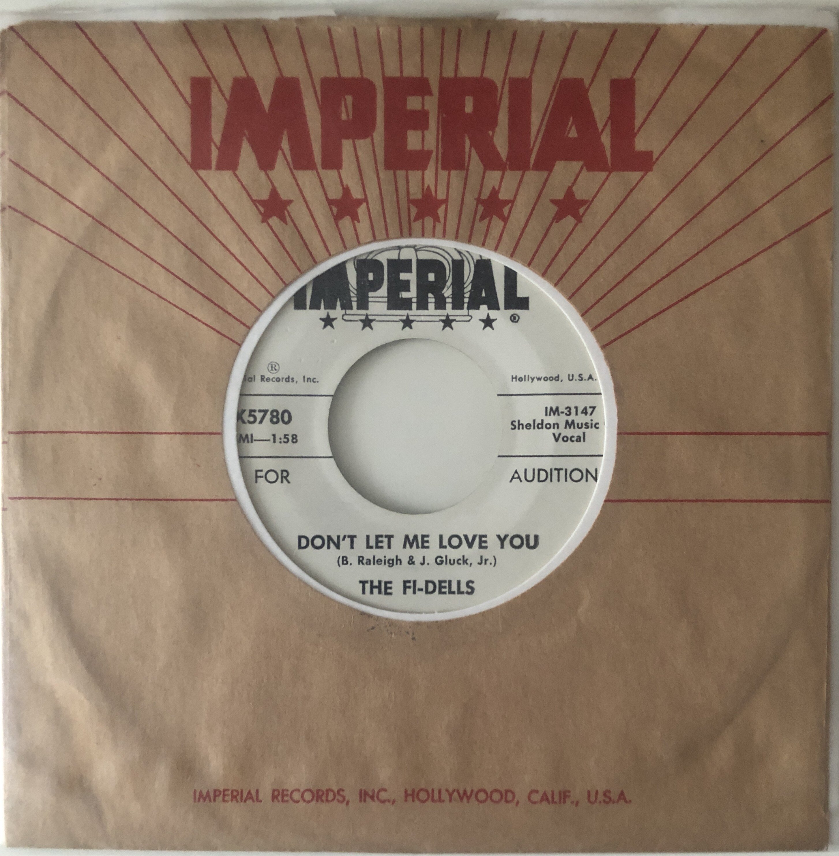 Payment through PayPal as F & F or add 5% to cover fees Paypal to roger-banks@supanet.com or Bank Transfer please PM if interested UK Customers Only New Postage Rates 1st Class £4.50 add £0.50 for each additional item, Recorded Delivery add £2.00 to 1st class rate, Special Delivery £11.50 Please note company sleeves shown are not included with each record but are available at an extra cost from £2.00 each please ask for prices All originals & all strictly & individually graded 1 The Apollas – Just Can’t Get Enough Of You – Loma M- uptempo Ashford, Simpson & Armstead penned girl group dancer, nice clean copy - SOLD 2 Eddie Bo – Every Dog Got His Day – Ric M- drivin’ uptempo New Orleans R & B dancer now tough to find, this is a pristine copy - SOLD 3 Bobby Bland – Yum Yum Tree – Duke Demo M- lovely clean vinyl demo of this Detroit produced drivin’ mid-tempo R & B classic 4 The Dells – Your Song – 20th Century Fox M- 1980 dancer played at the time as a new release & went on to great heights & still so popular, Detroit Don Davis & Sonny Sanders produced & arranged, just great - SOLD 5 The Five Satins – You Can Count On Me – Roulette WDJ mint vinyl demo of this big city soul mid-tempo group dancer featuring Fred Paris on lead vocals 6 Brenda Holloway – When I’m Gone – Dutch Artone Picture Cover Ex / M- cover wear only taped at top edge vinyl M-, the rarest of formats for this all-time mid-tempo Motown girlie classic, a nice item
