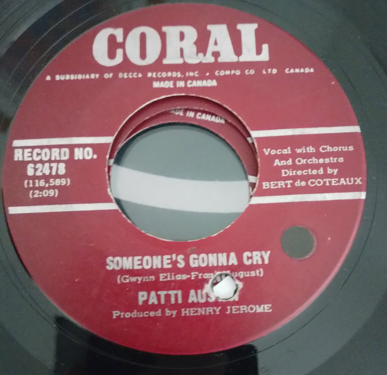Three Canadians,Condition of vinyl stated, label condition as shown, all play well. Patti Austin - Someone's gonna cry - Coral vg+ £85 Patti Austin - A tisket a tasket - Coral Ex £35 Leroy Taylor - Oh Linda - Brunswick Ex £80 Postage £5 signed insured to £50 or £10 special delivery fully insured. Please pm or email kalama64@hotmail.co.uk